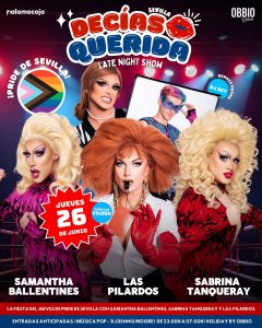 ¡LA FIESTA DEL JUEVES DEL PRIDE DE SEVILLA! 🏳️🌈 El próximo 💚 JUEVES 26 DE JUNIO 💛 tras el pregón 🌈 te esperamos en 📍 @obbio_holiday para disfrutar de la mejor fiesta POP con los shows de ❤️ @laspilardos 🧡 @samanthaballentines y 🩵 @sabrina_tanqueray acompañados por la música de ⚡️ @d_nnismoore 🎧 ¡DESDE LAS 23:00H! 🕒